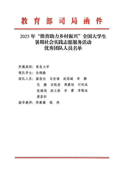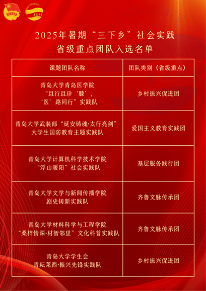 6.我校青年意愿者结合会“七海公益·声传山海”推普意愿办事团队(指点教师:徐国辉;我校“行走的思政课——青岛大学‘美润昆仑’新疆村落美育复兴”案例脱颖而出,