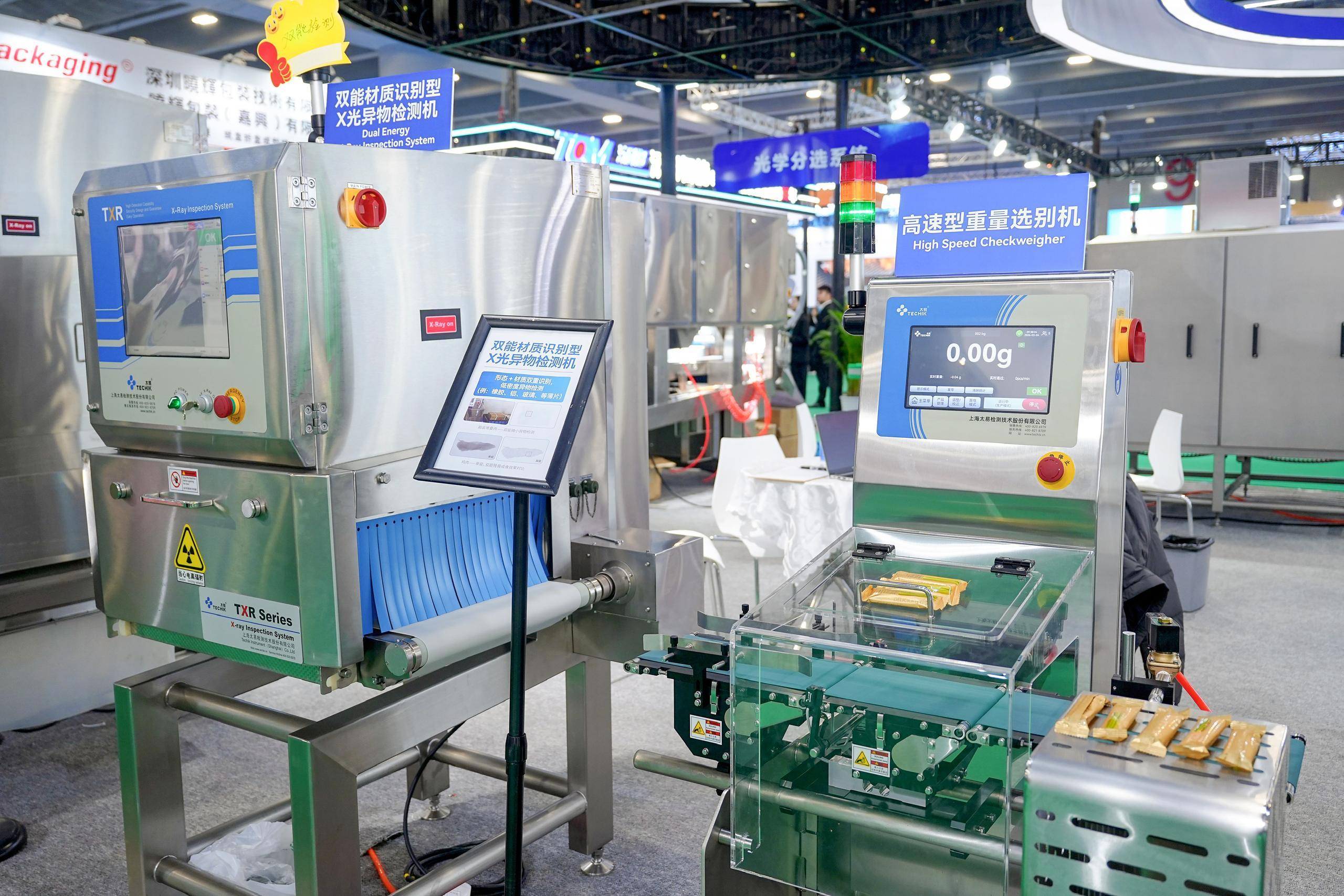 展会现场,到具备自进修算法精准识别多种异物的X光机,展位前征询洽商川流不息,